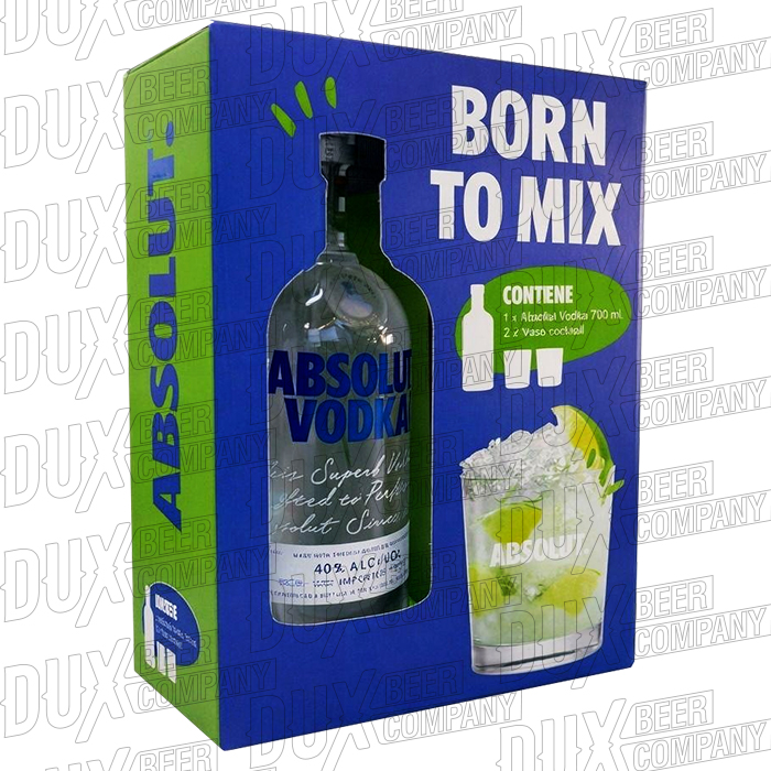 Absolut Vodka Gift Pack Botella 700 ml + 2 Vasos Cocktail